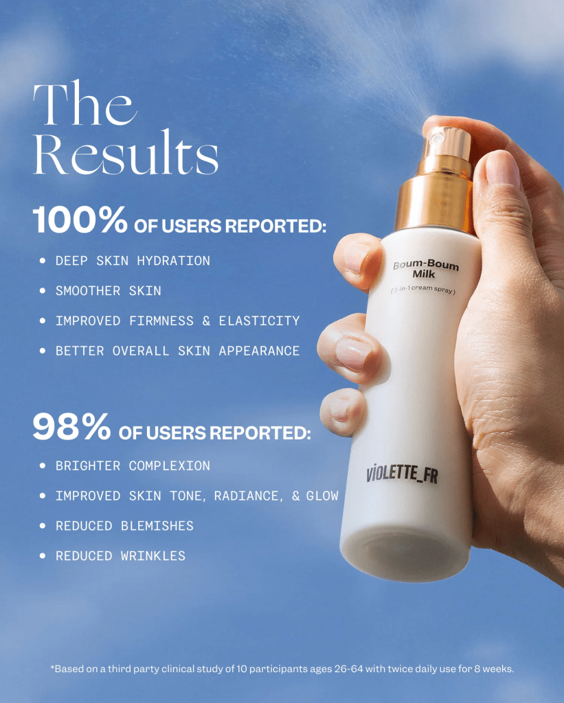 Violette FR Boum Boum Milk is a 3-in-1 facial spray marketed as a toner, serum, and moisturizer hybrid. It has drawn significant attention among skincare enthusiasts for its minimalist, French-inspired approach.
